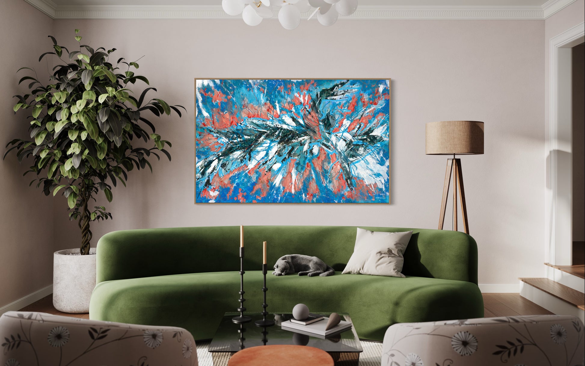 Original Artwork size: 126h x 195w x 4d cm. (Dimensions with no frame)