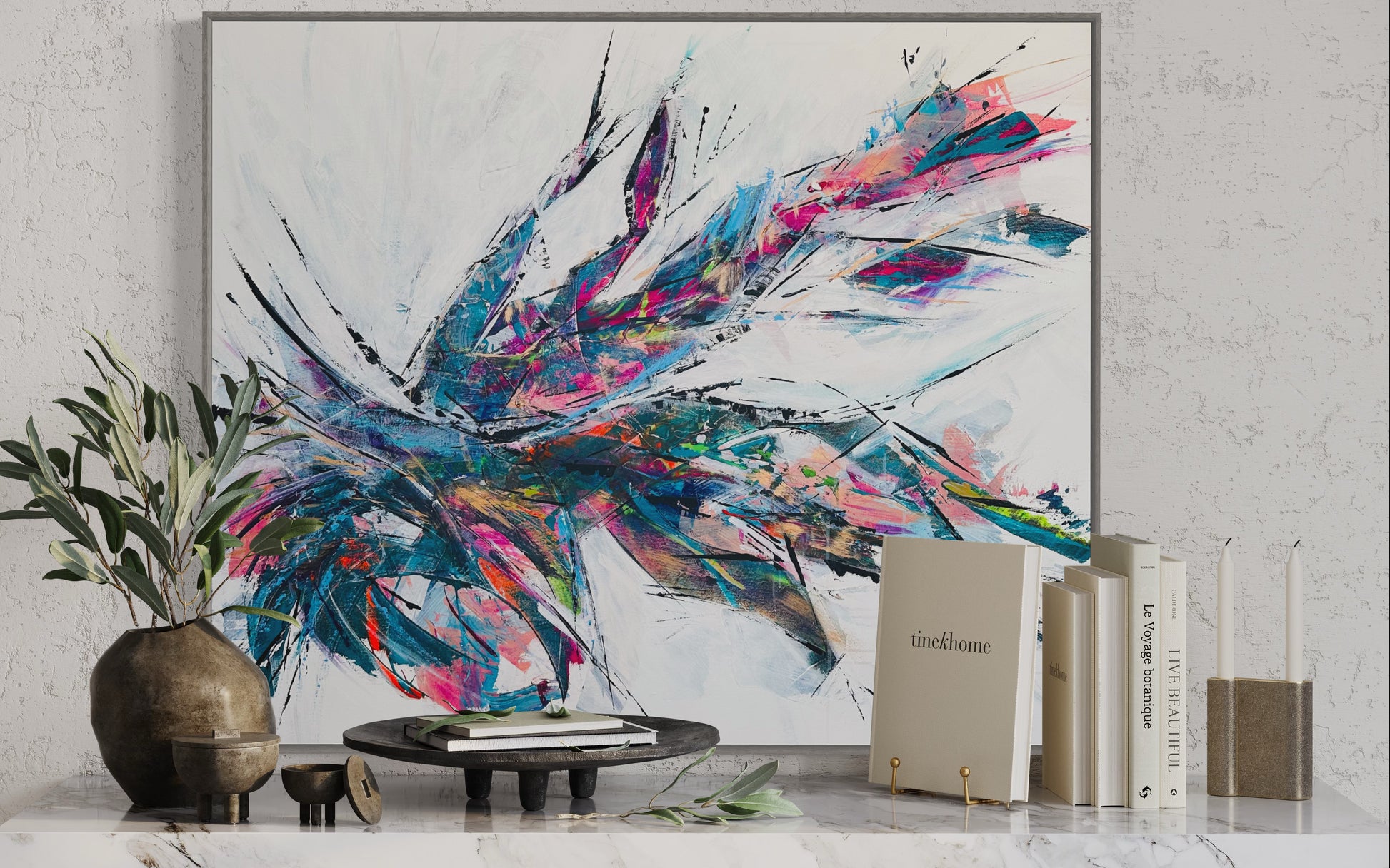 Original Artwork size: 102h x 122w x 4d cm. (Dimensions with no frame)
