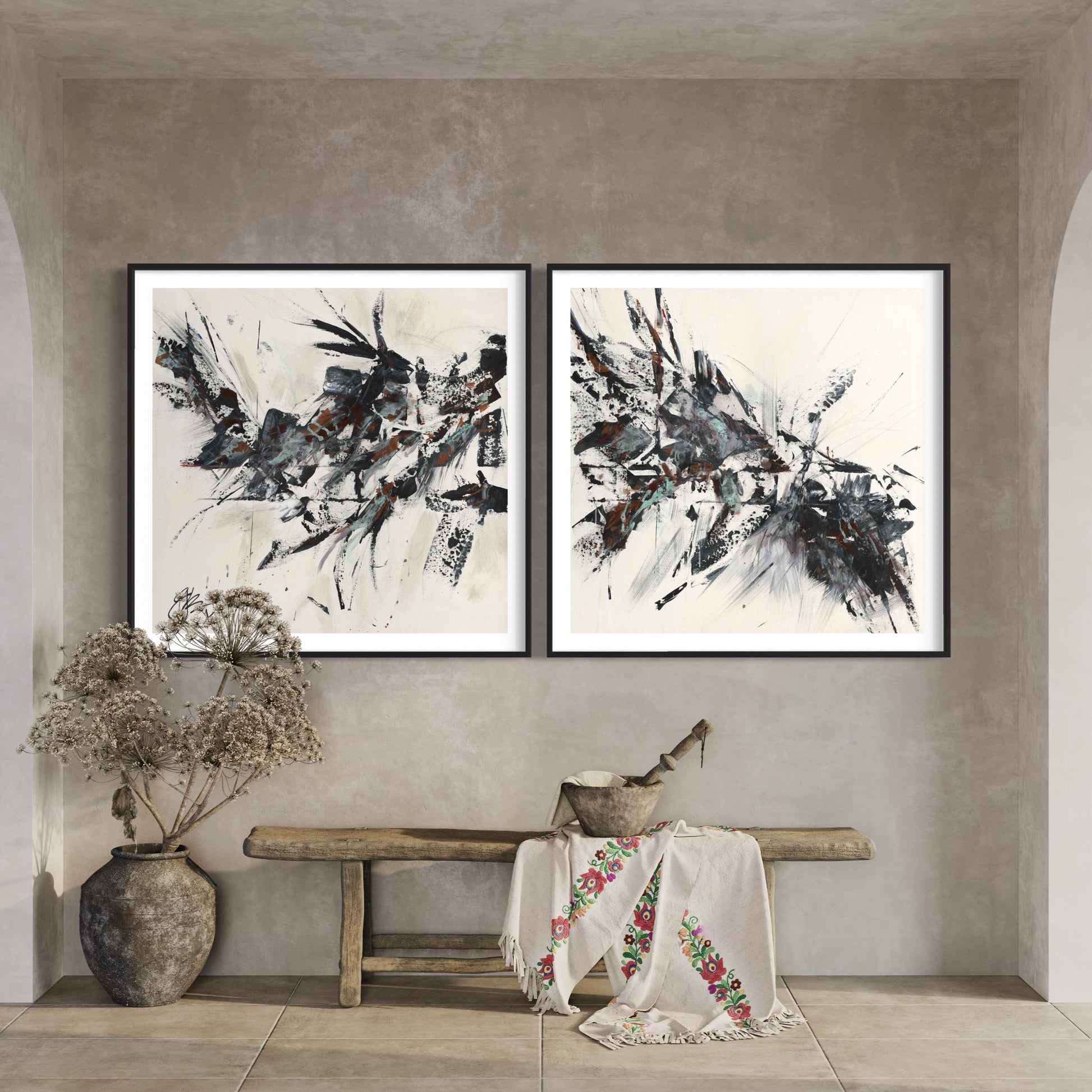 Fine Art print on matte French Cotton Rag Paper 310gsm. Limited edition prints (16) reproduced from Original Artwork from the Loveless Collection, LOVELESS is the first diptych created, a combination of acrylic and mixed media on two canvas pieces. Drama captured on canvas with the copper patina acid wash on this unique piece.