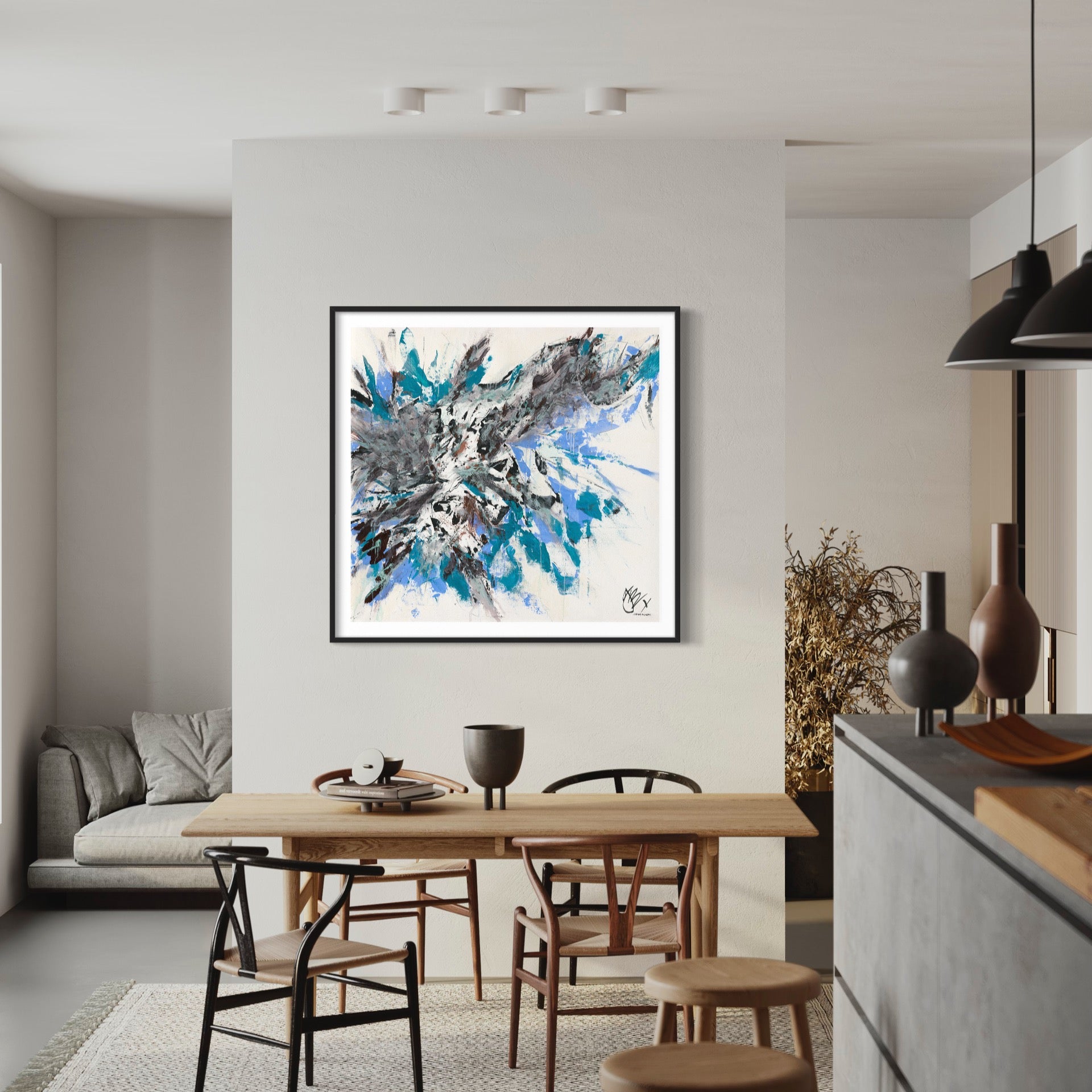 Framing is optional. Professional framing includes a trim of a 1cm white border with an additional 5cm mat board border and a 2cm thick timber frame (in natural oak, white or black)