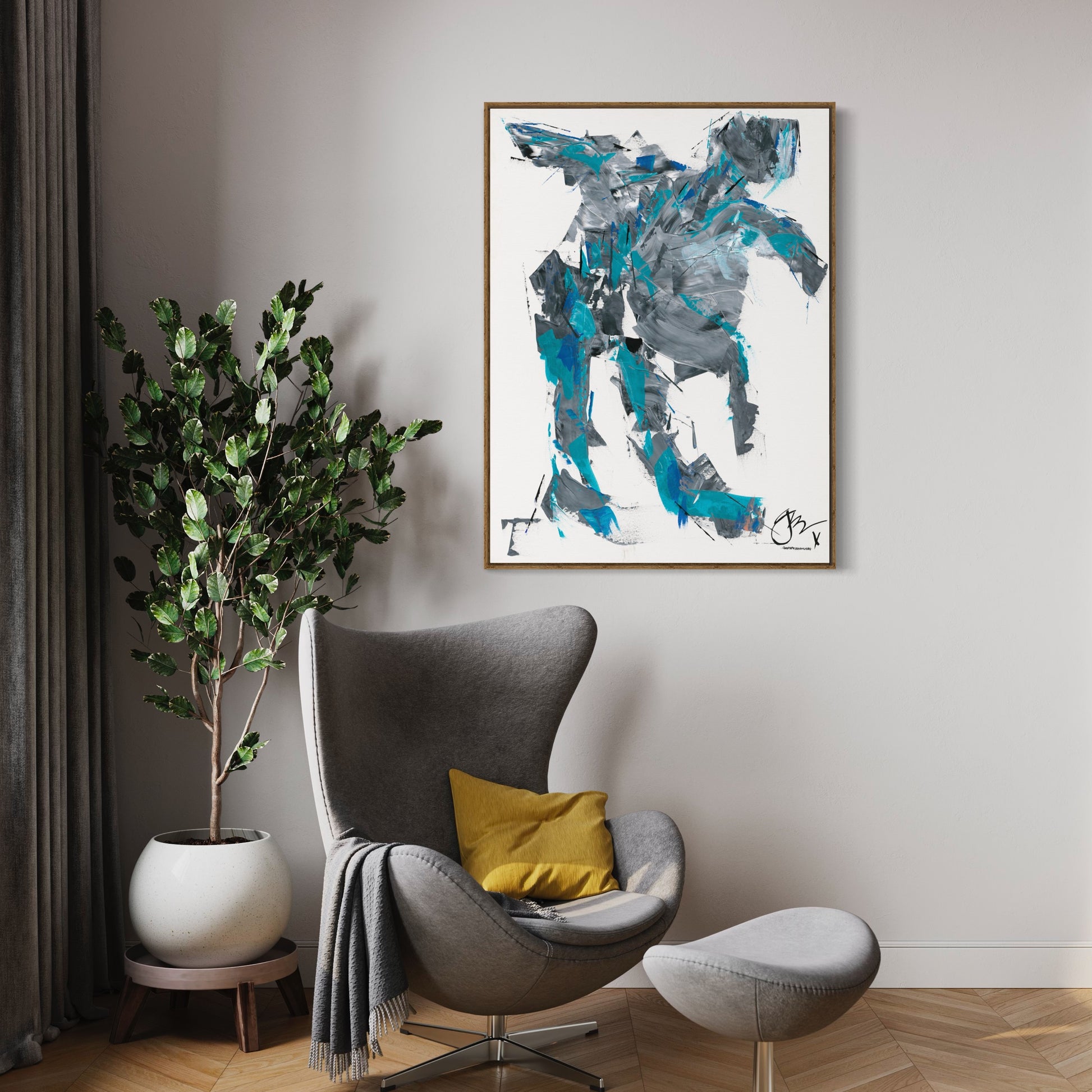 Original Acrylic on Canvas. This unique early signature piece, in blues and whites, captures the kinetic energy of a familiar sea creature.