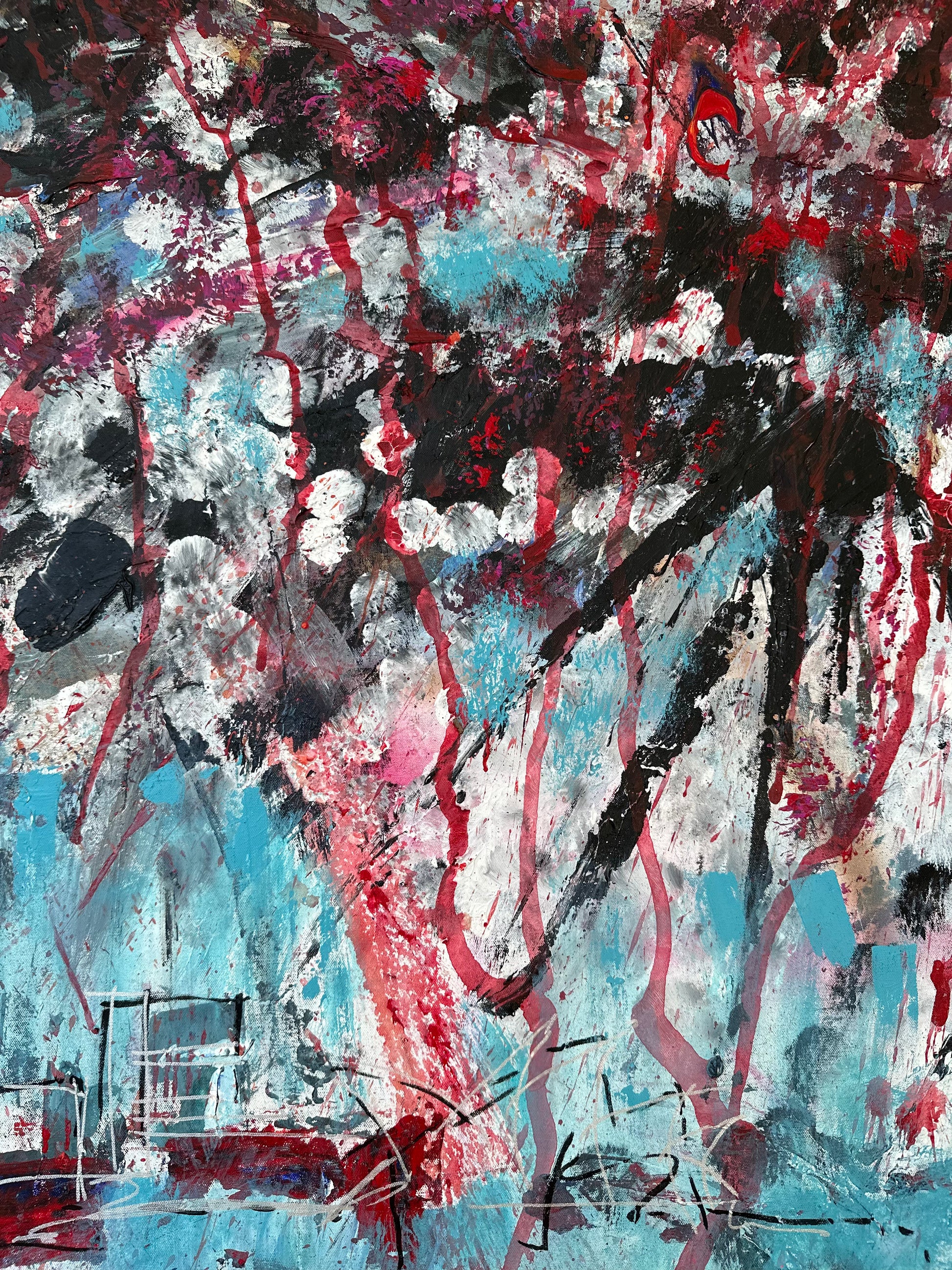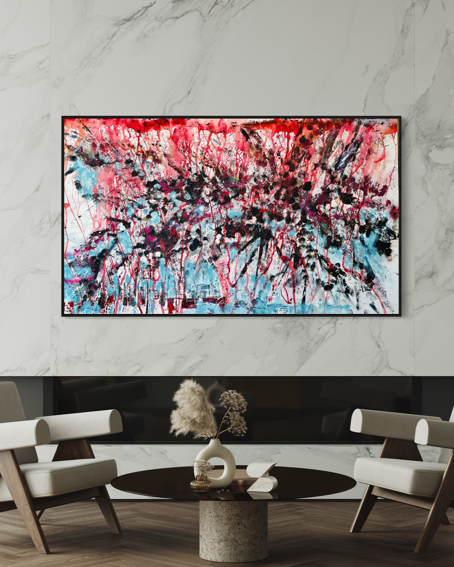 Original Acrylic and Mixed Media on Canvas. UNDER A BLOOD RED sets a scene over Sydney Harbour. Could it be stress, a new years celebration, battle or elation ? The vibrancy of this large scale signature artwork captures a view of our summer night sky on the harbour.